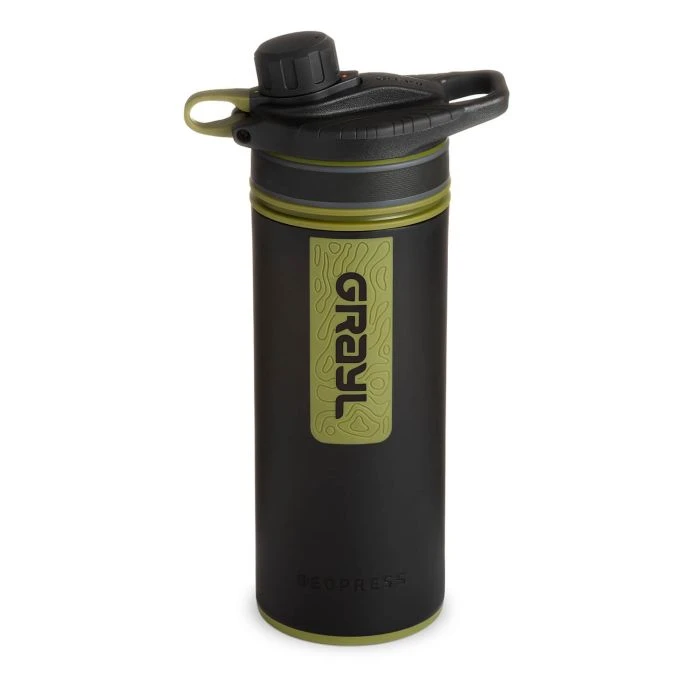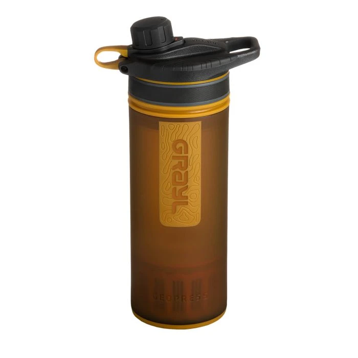 Die GeoPress Trinkwasser-Filterflasche von Grayl ist ein Wasserfilter der seines gleichen sucht. In gerade mal 8 Sekunden hast du mit nur wenigen Handgriffen 710 Milliliter sauberes und reines Trinkwasser zu Hand was die GeoPress in Sachen Geschwindigkeit, Einfachheit und Effektivität unübertroffen macht. Einfach Wasser aus dem Fluss, Brunnen oder See, oder im Urlaub aus fragwürdigen Wasserhähnen, in den Behälter einfüllen, den Filtereinsatz aufschrauben und nach unten drücken – schon sind Viren, Bakterien, Pestizide, Chemikalien, Schwermetalle und sogar Mikroplastik aus dem Wasser gefiltert und du kannst reines Trinkwasser genießen, egal wo du auf der Welt bist.
