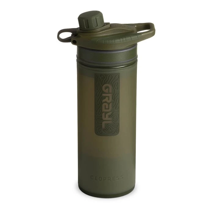 Die GeoPress Trinkwasser-Filterflasche von Grayl ist ein Wasserfilter der seines gleichen sucht. In gerade mal 8 Sekunden hast du mit nur wenigen Handgriffen 710 Milliliter sauberes und reines Trinkwasser zu Hand was die GeoPress in Sachen Geschwindigkeit, Einfachheit und Effektivität unübertroffen macht. Einfach Wasser aus dem Fluss, Brunnen oder See, oder im Urlaub aus fragwürdigen Wasserhähnen, in den Behälter einfüllen, den Filtereinsatz aufschrauben und nach unten drücken – schon sind Viren, Bakterien, Pestizide, Chemikalien, Schwermetalle und sogar Mikroplastik aus dem Wasser gefiltert und du kannst reines Trinkwasser genießen, egal wo du auf der Welt bist.