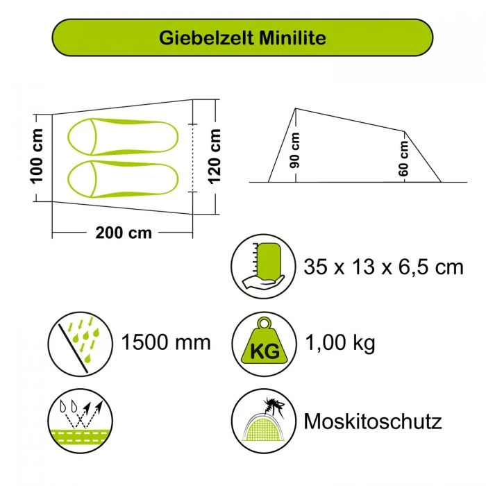 Material Außenzelt: 190T Polyester PU, 1500 mm