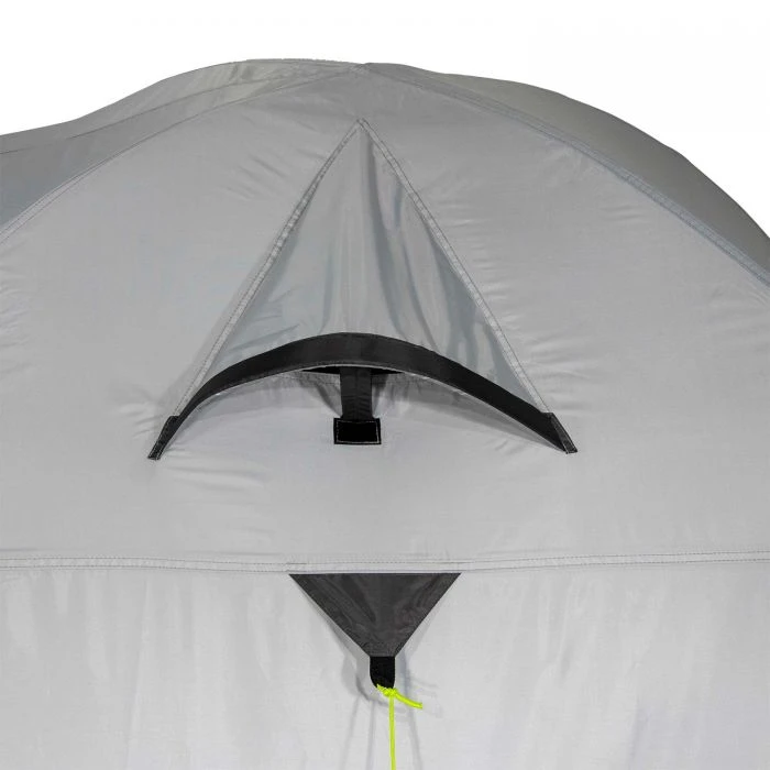 Das Zelt „Nevada“ von High Peak ist ein Kuppelzelt mit Vorbau, mit PE Boden, Fibergglas-Gestänge und atmungsaktivem Polyester Material. Der Eingang ist wettergeschützt und der Vorbau bietet Stauraum. Das Innenzelt ist abgedunkelt mit Wannenboden, Innentaschen und einem Lampenhalter.