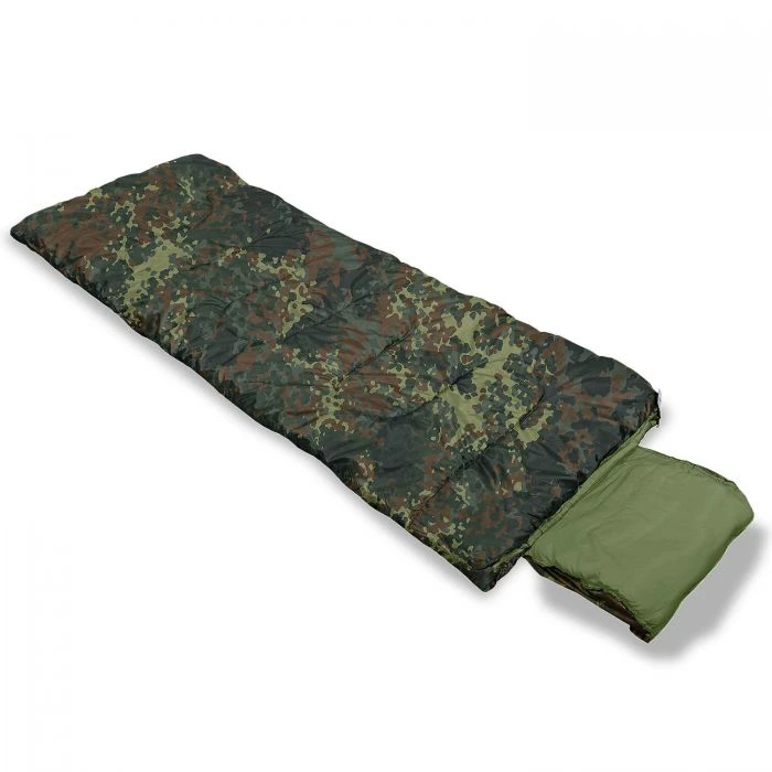 Der israelische Pilotenschlafsack von MFH ist ein praktischer Deckenschlafsack mit 2-lagige Füllung. Der Schlafsack lässt sich leicht in dem integrierten Transportsack, der gleichzeitig als Kapuze genutzt werden kann, verstauen. Ebenso praktisch ist der Tragegriff am Packriemen. So kannst den Schlafsack leicht transportieren.