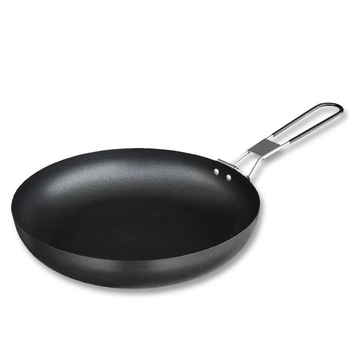 Genau das Richtige für Campingfreunde, die gerne mal den Kochlöffel schwingen. Antihaftbeschichtete Pfanne, mit der auch der Abwasch Freude macht, da Rückstände leichter zu beseitigen sind. Der Griff kann eingeklappt werden und somit ist die Bratpfanne besser verstaubar. Größe: ø 25 cm, Gewicht: 450 g.