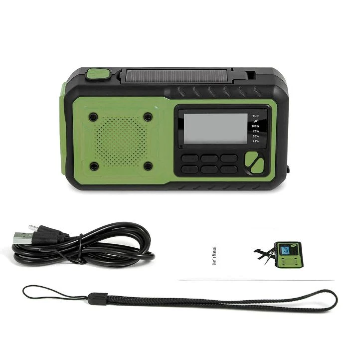 Dieses Multitalent ist Radio, Solar-Panel, Powerbank, Taschen- und Leselampe sowie Notfall-Alarmsignal in einem. Das kompakte und robuste Kurbelradio ist immer und überall funktionsbereit. Es empfängt AM, FM und SW für alle Nachrichten der Welt. Das Radio besitzt einen integrierten und wieder aufladbarem Lithium-Akku, der über USB-Typ-C, dem integrierten Kurbelgenerator oder im Notfall auch über die integrierte Solarzelle bei Sonnenschein aufgeladen werden kann. Darüber hinaus kann das Notfallradio auch mit handelsüblichen AAA-Batterien betrieben werden. Ausgestattet ist es mit Powerbank (4000mAh), Taschen- und Leselampe, Tastensperre, Kopfhöreranschluss, SOS-Alarmtaste, Akku-Standanzeige und Aufhängeschlaufe. Die leuchtstarke Taschenlampe kann in drei unterschiedlichen Leuchtmodis verwendet werden. Die SOS-Alarmtaste löst einen lauten Alarm aus, um im Notfall auf sich aufmerksam zu machen. Ideal für Camping, Outdoor und Survival-Aktivitäten geeignet.