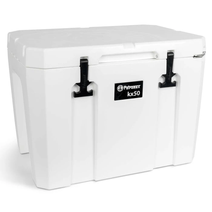 Mit der Petromax Kühlbox KX50 bist du ohne Strom sowohl bei deinem mehrtägigen Abenteuer als auch im Notfall zu Hause bestens vorbereitet und ausgerüstet. Das Ultra-Passivkühlsystem wird allein mit handelsüblichem Eis, Kühlakkus oder Trockeneis betrieben. Die Isolierschicht der Kühlbox ist mindestens 45 mm stark, was für eine möglichst lange Temperaturbeständigkeit im Inneren sorgt. So kann die hohlraumisolierte KX50 Eis bis zu 12 Tage gekühlt halten, ganz ohne Kompressor oder Absorber!